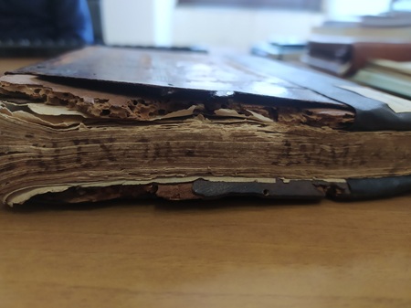Finally, since books were stored horizontally at the time, the author's name and the title of the work were added by hand on the lower edge [photo 4].