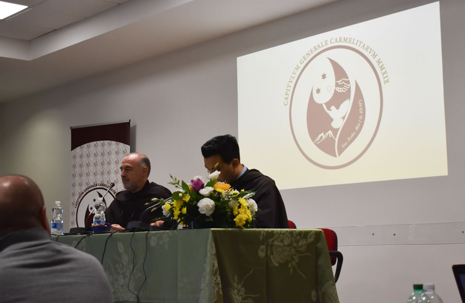 The second session of the Chapter started at 16:00. The participants approved the Ordo Capituli. The Prior General made his presentation, underlining the growth of the Order; the General Commissions, especially of Justice and Peace, Liturgy and Revision of the Constitutions; formation, intial and ongoing; protection of minors and vulnerable persons; the Carmelite Family, the concept of Carmelite Family, the nuns, recent foundations and closures; the Donum Dei family; the hermits belonging to the Order; the Third Order; the Carmelite bishops; the relationship with other ecclesial organizations like USG and CIVCSVA; the economy of the Order; the schools of the Order; the causes for beatification and canonization; and relations with the Discalced Brothers.