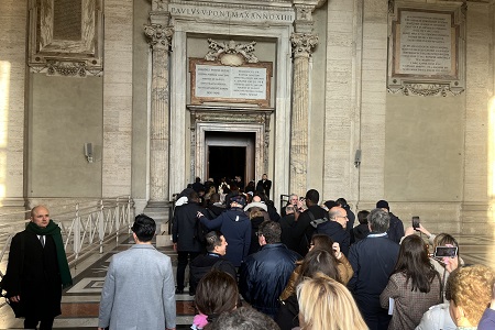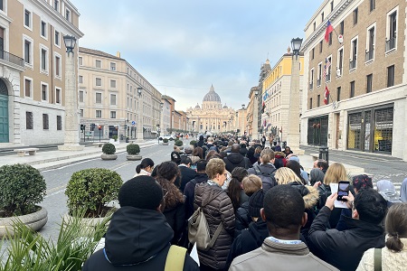 La mattina seguente, 25 gennaio, i giornalisti e i direttori delle comunicazioni partecipanti si sono riuniti alla fine di Via Conciliazione per iniziare un pellegrinaggio verso la Porta Santa. Il Vaticano ha offerto un piccolo spuntino e un caffè prima di recarsi nell'Aula Paolo VI per l'udienza con Papa Francesco.