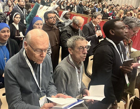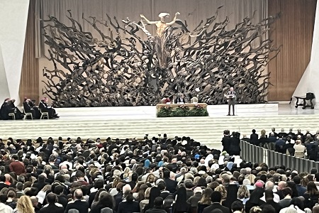 Purtroppo la partecipazione di Papa Francesco è stata limitata. Ha consegnato il suo testo preparato a un assistente dicendo che avrebbe fatto distribuire il documento ma che avrebbe parlato solo brevemente perché tutti avevano fame. Dopo le sue osservazioni, è passato a salutare i cardinali e i vescovi e coloro che sono riusciti ad ottenere un posto in prima fila. Le sue osservazioni improvvisate e quelle preparate sono state poi pubblicate e si possono trovare qui.