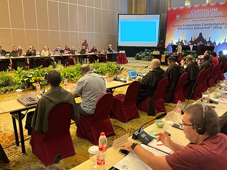Dopo la giornata di ritiro e riflessione guidata da Mons. Henricus Pidyardo, i membri del Capitolo hanno dedicato un periodo di riflessione sui possibili candidati al governo dell'Ordine. Questa mattina, dopo la preghiera mattutina e l'Eucaristia, i membri del Capitolo Generale si sono riuniti nella Sala Capitolare per dare inizio al processo di votazione. Il Capitolo Generale 2025 ha eletto quattro membri del governo dell'Ordine nel primo giorno delle elezioni. Come annunciato in precedenza, Desiderio García Martínez della Provincia Arago, Castellae et Valentiae è stato eletto Priore Generale per il prossimo sessennio.