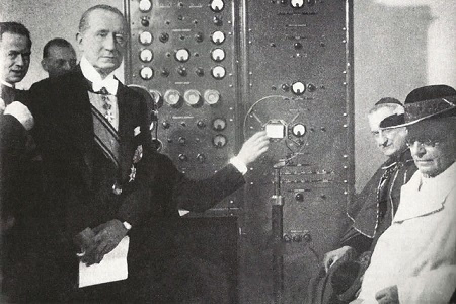 C'è un cinegiornale dell'Istituto Luce che mostra il papa che va a prendere il sistema radio da Marconi. Puoi guardarlo qui: www.youtube.com/watch?v=4sda27wQqF8