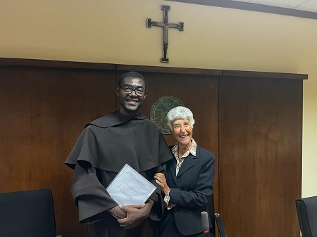 Two members of the CISA Community in Rome recently received doctorates from the Pontifical Gregorian University. Djomandji Zofiet Guy Martial, O. Carm., from Cameroun in the German Province, defended his thesis on Le retour à l’imagine et à la resemblance de Dieu dans les Exercices de dix jours chez Jean de Saint-Samson.