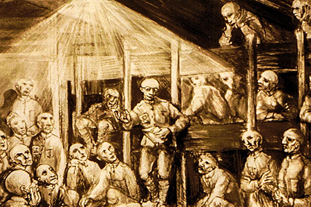 "Late in the evening one day in April, our cell door no. 623 in the barracks is thrown open and with a "Los, Los! (Come on. Come on)