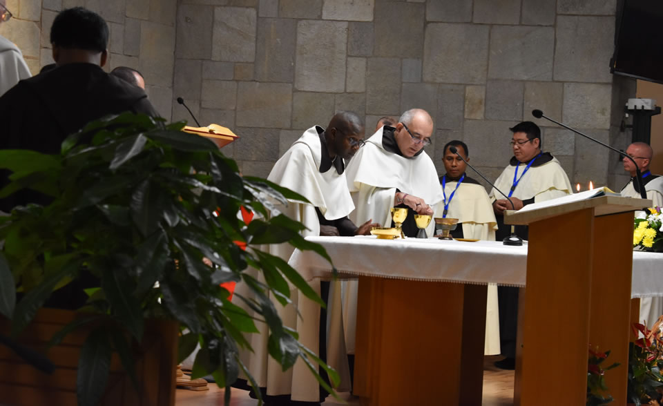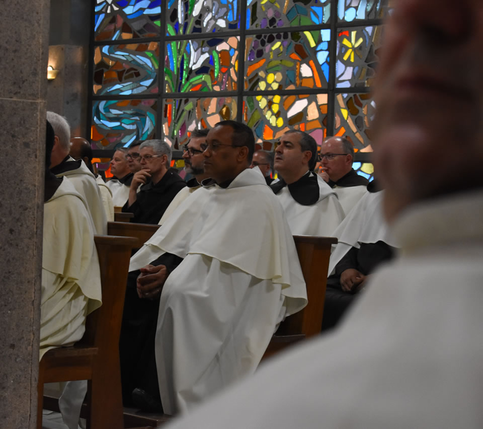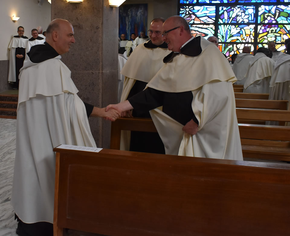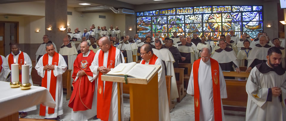 The first session of the Chapter was then held according to clause 271 of the Constitutions. The roll call of the Gremiali and guests was read out and also of the officials of the Chapter. Then the election of the President of the Chapter, who will preside until the election of a new Prior General, was held. Fr Miceál O’Neill (Hib) was elected President of the Chapter and he accepted