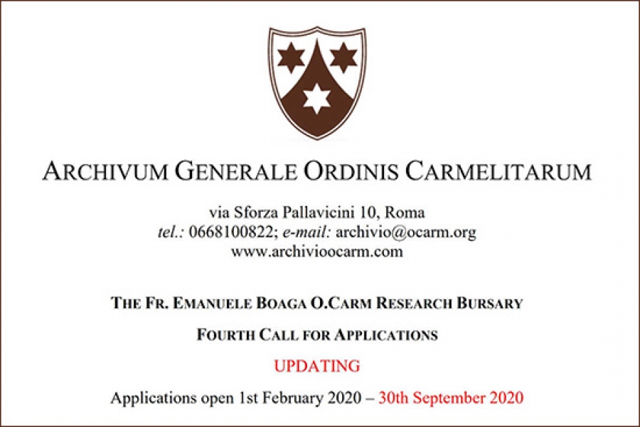 The deadline for the 2020 research grant, dedicated to E. Boaga, has been extended to 30 September. On the Archive's website you will find all the relevant information in the three official languages of the Order. (links: EnglishEspañol, Italiano)